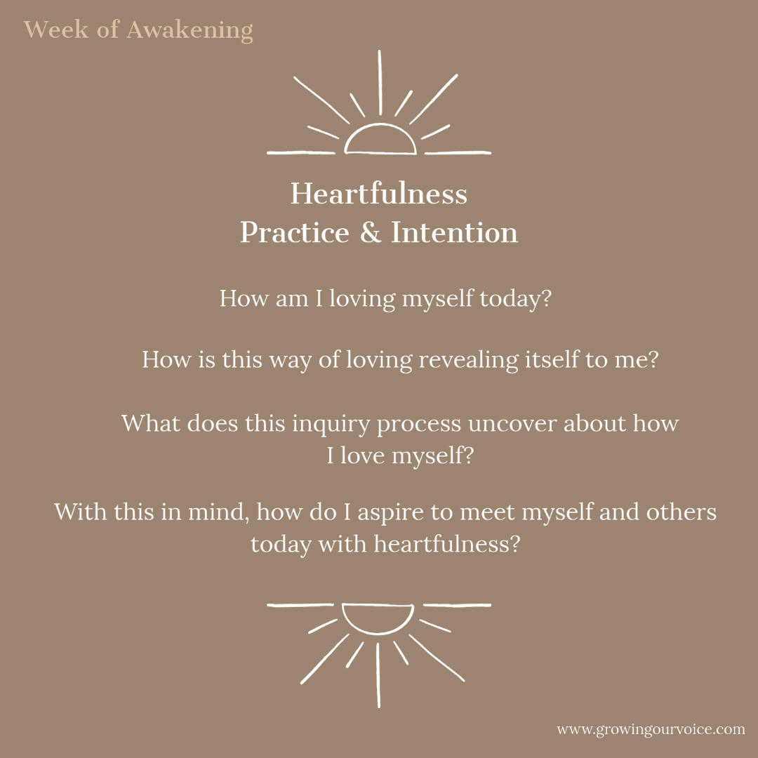 This week’s intention is to awaken the forgotten truth of our heart – that we are lovable, we are loving, and we are love. Heartfulness is simply being full of heart, being full of tenderness, warmth, kindness, care, LOVE. To walk the path of heartfulness is to walk the path back into our own hearts. We see our conditioning, our limiting beliefs, our stories that have trapped or buried the truth of our heart. We begin removing these weeds, nourish the soil, and let the sun’s light radiate onto the seeds that have always been there, just dormant, awaiting for this time to grow and bloom.